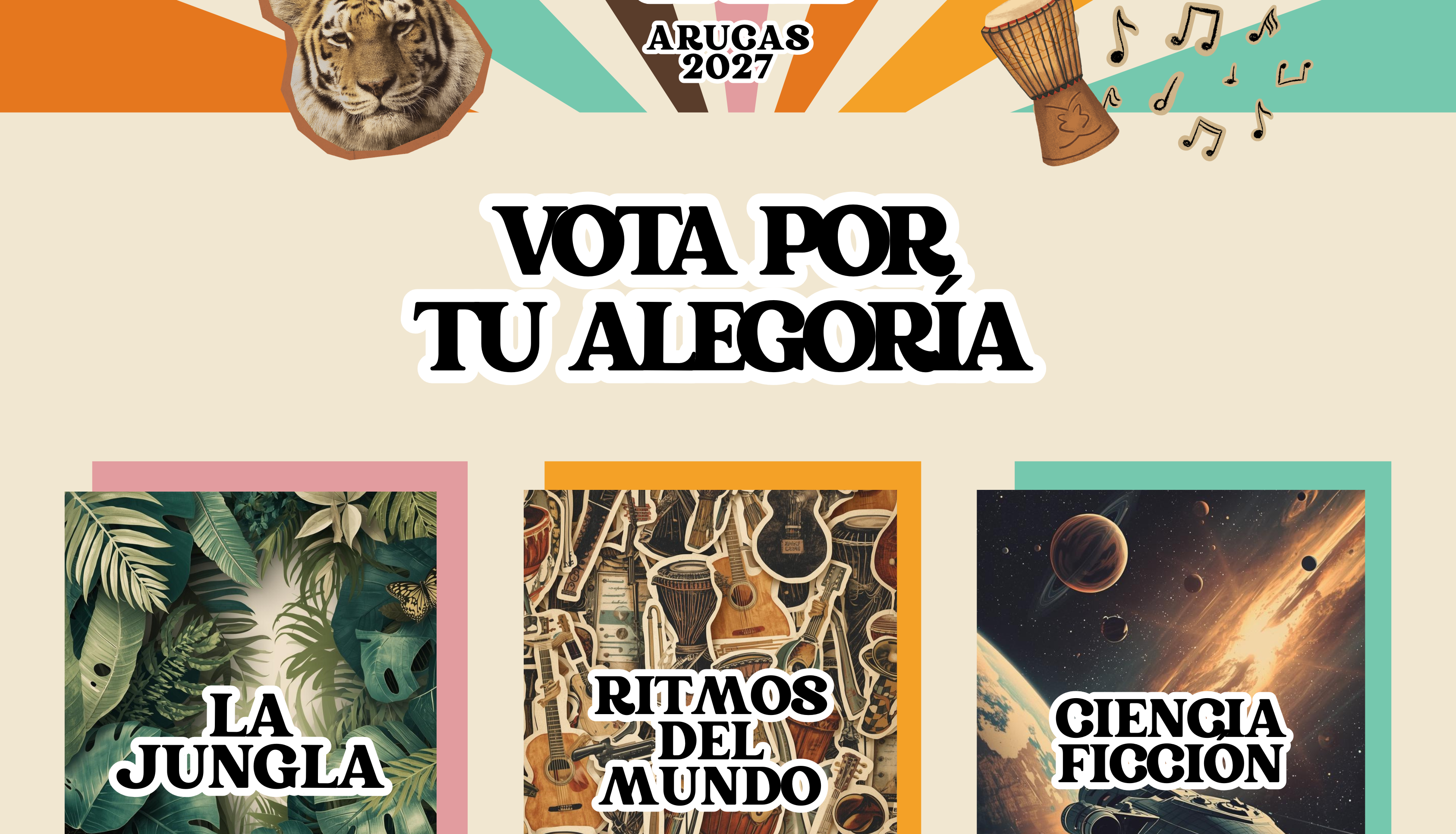 La Concejalía de Festejos del Ayuntamiento de Arucas abre la votación para elegir la alegoría del Carnaval de Arucas 2027. La población podrá elegir la temática de su preferencia en la página web www.carnavaldearucas.com. Las propuestas para las carnestolendas del año que viene son: “La jungla”, “Ritmos del mundo” y “Ciencia Ficción”. La encuesta estará abierta durante un mes, desde este lunes y hasta el 6 de mayo.