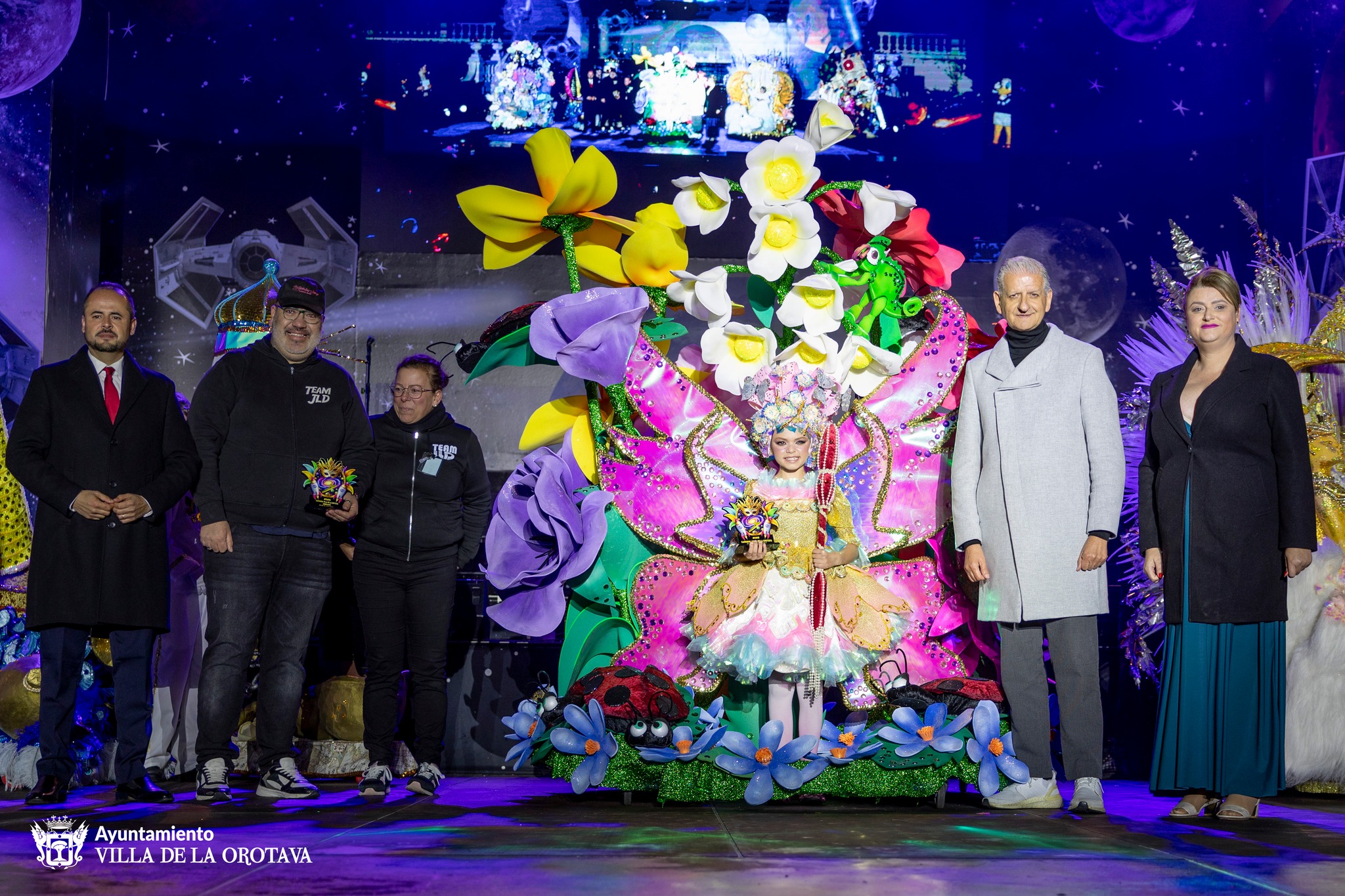Después de 31 años, La Orotava ya tiene reina infantil del Carnaval. Alexia Galván Carballo se alzó con el cetro con la alegoría ‘Crees en la magia’ de José Luis Delgado y representando a Gráficas Printer. Alejandra González Fariña quedó primera finalista con ‘Fantasy- en el parque de las fantasía’ de Sergio y Octavio Hernández Hernández, representando a Contenur, y en segundo lugar la niña Alexia Pérez Díaz con el diseño ‘Desde un lugar maravilloso’ del diseñador Joran Torres, de la empresa Audio Tenerife.