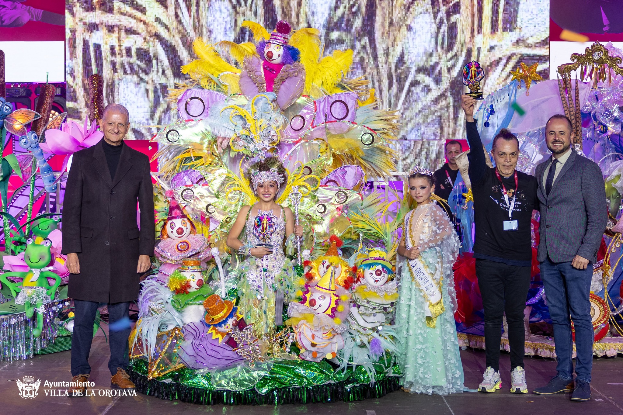 El momento más esperado llegó con el fallo del jurado. Aroa Pacheco Cabrera fue proclamada nueva Reina Infantil del Carnaval de la Villa de La Orotava 2026. La joven representó a la entidad Contenur, S.L. y lució un diseño de los hermanos Sergio y Octavio Hernández Hernández, que destacó por su originalidad y acabado.