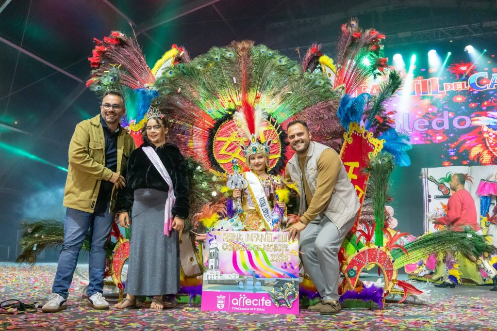 De esta forma, las cinco aspirantes a Reina del Carnaval de Arrecife recibieron distinciones al igual que sucedió con las cuatro candidatas participantes en la categoría de Reina Infantil, en la que Leah Burgos, con la fantasía ‘Espejito no preguntes más’, diseñada por Rafa Denis y Rosa Montesdeoca e inspirada en un cuento de Disney, fue proclamada Primera Dama de Honor.