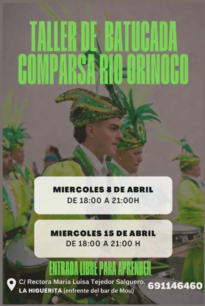 La energía del carnaval y el poder del ritmo vuelven a tomar protagonismo gracias a la comparsa Río Orinoco, que ha organizado un taller de batucada dirigido a todas las personas interesadas en aprender y disfrutar de esta expresión musical.