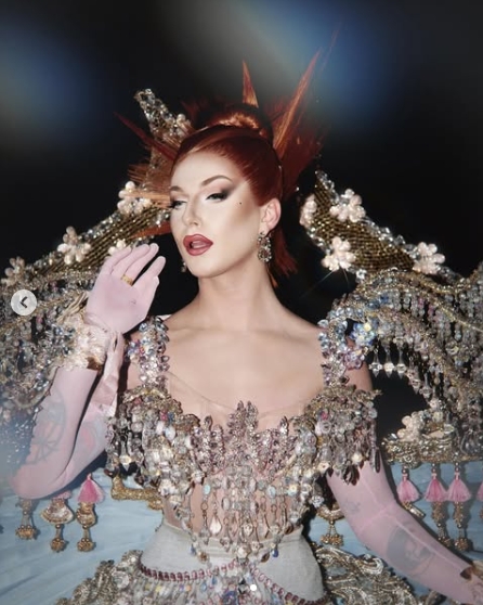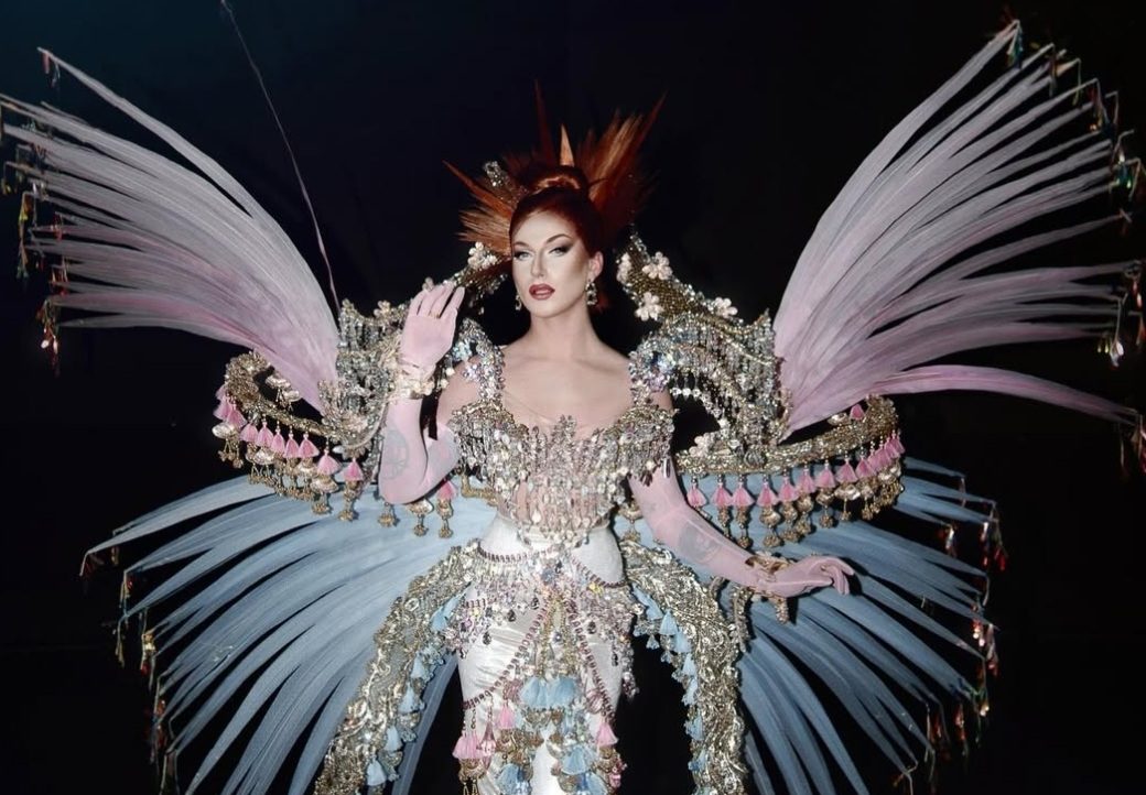 La dirección creativa del look corrió a cargo de Marc Philguer, quien según la drag queen “hizo todo lo posible para que este sueño se hiciera realidad”. El conjunto alcanzó su máxima expresión con la incorporación de joyería de Swarovski, que añadió destellos a la silueta.