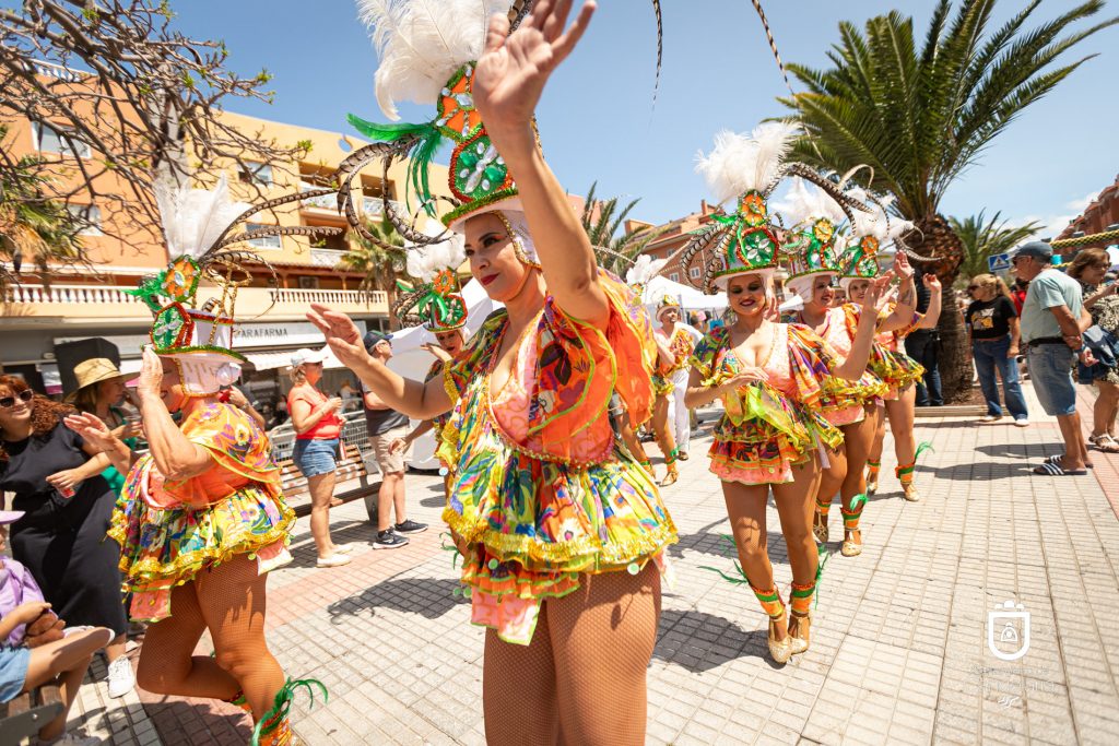 Con una treintena de puestos de comercios y restaurantes locales, la feria ofreció productos artesanales y delicias gastronómicas, mientras que la música y el colorido de las agrupaciones carnavaleras llenaron de energía las calles. Entre los protagonistas destacaron la comparsa Tropicana, la comparsa Bella Mariana, la batucada Almagec y la comparsa infantil Tropicana, que animaron el evento con sus ritmos contagiosos y coreografías vibrantes, logrando que el público bailara al compás de la fiesta.