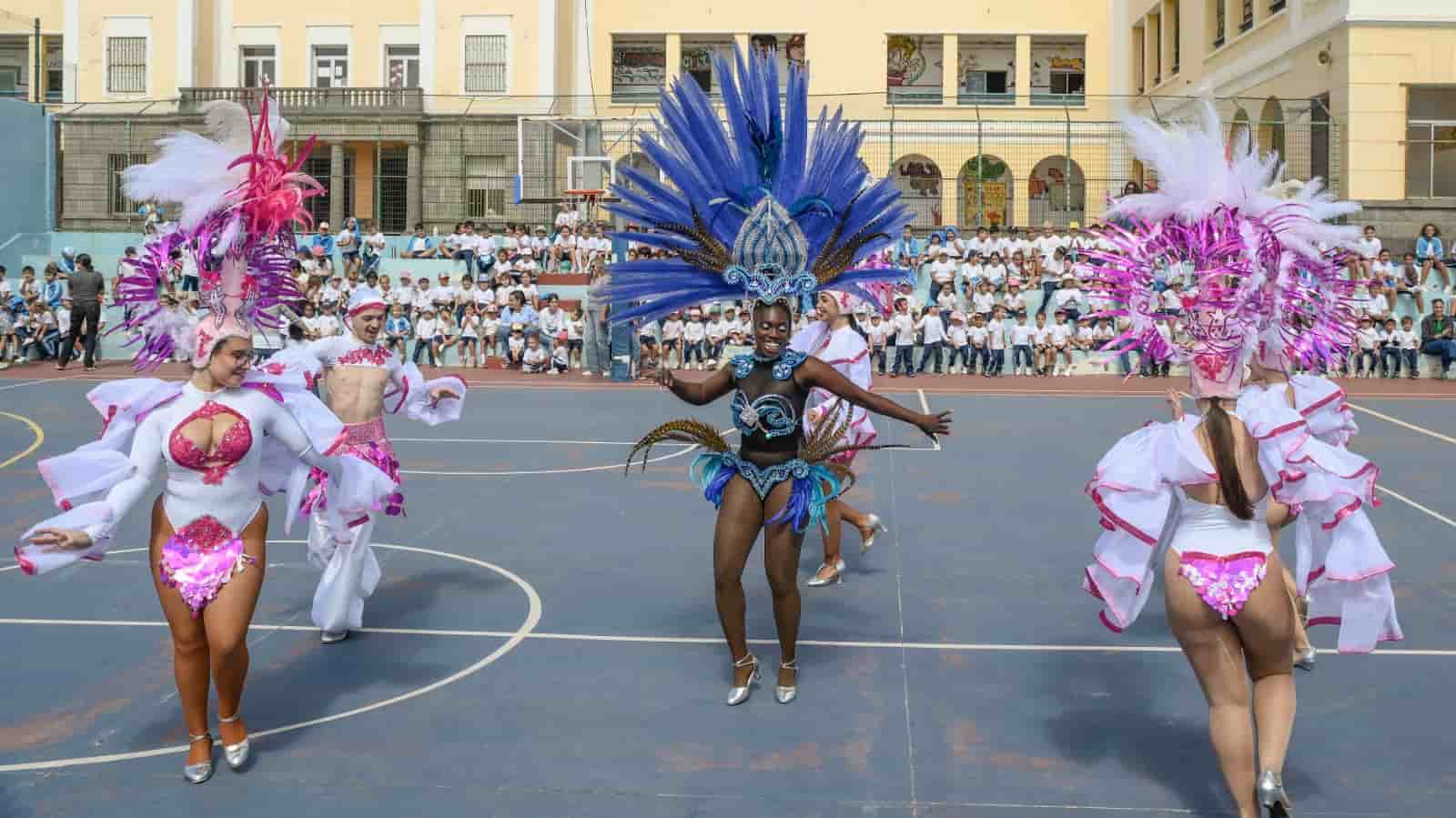El Carnaval en los distritos acercará la fiesta a ocho colegios de la ciudad. El primero en estrenar esta programación carnavalera ha sido el centro León y Castillo, que recibió la mañana de este martes 25 de febrero la visita de la murga Los Star y la comparsa Yoruba.