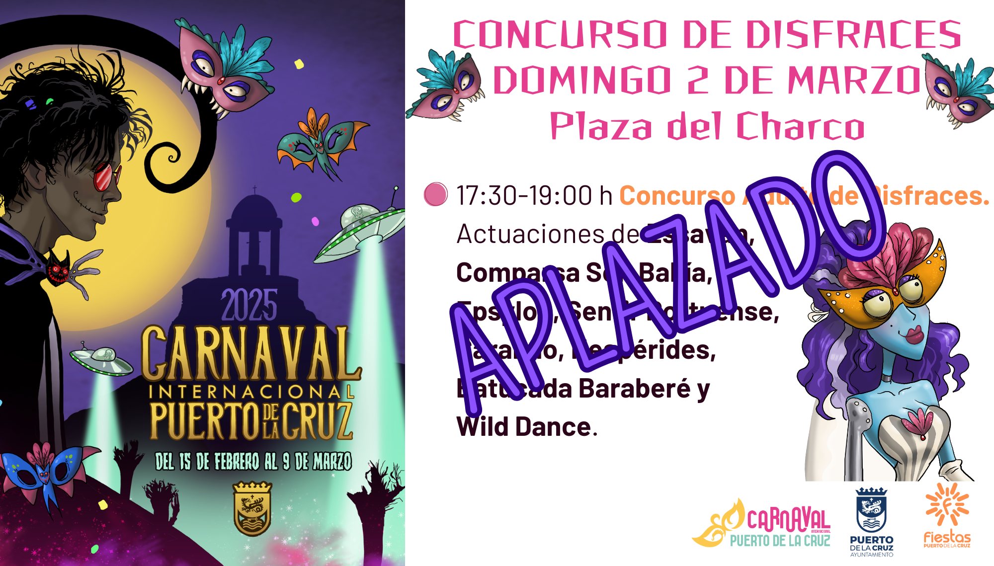 En un comunicado emitido a las 15 horas, los organizadores del Carnaval Internacional de Puerto de la Cruz han anunciado el aplazamiento de los actos programados para hoy, debido a las inminentes condiciones meteorológicas adversas en el Valle de La Orotava. La decisión se ha tomado en respuesta a la prealerta decretada por el Gobierno de Canarias, que advierte sobre la posibilidad de fenómenos climáticos severos en la región.