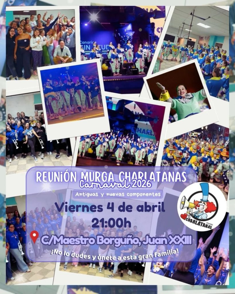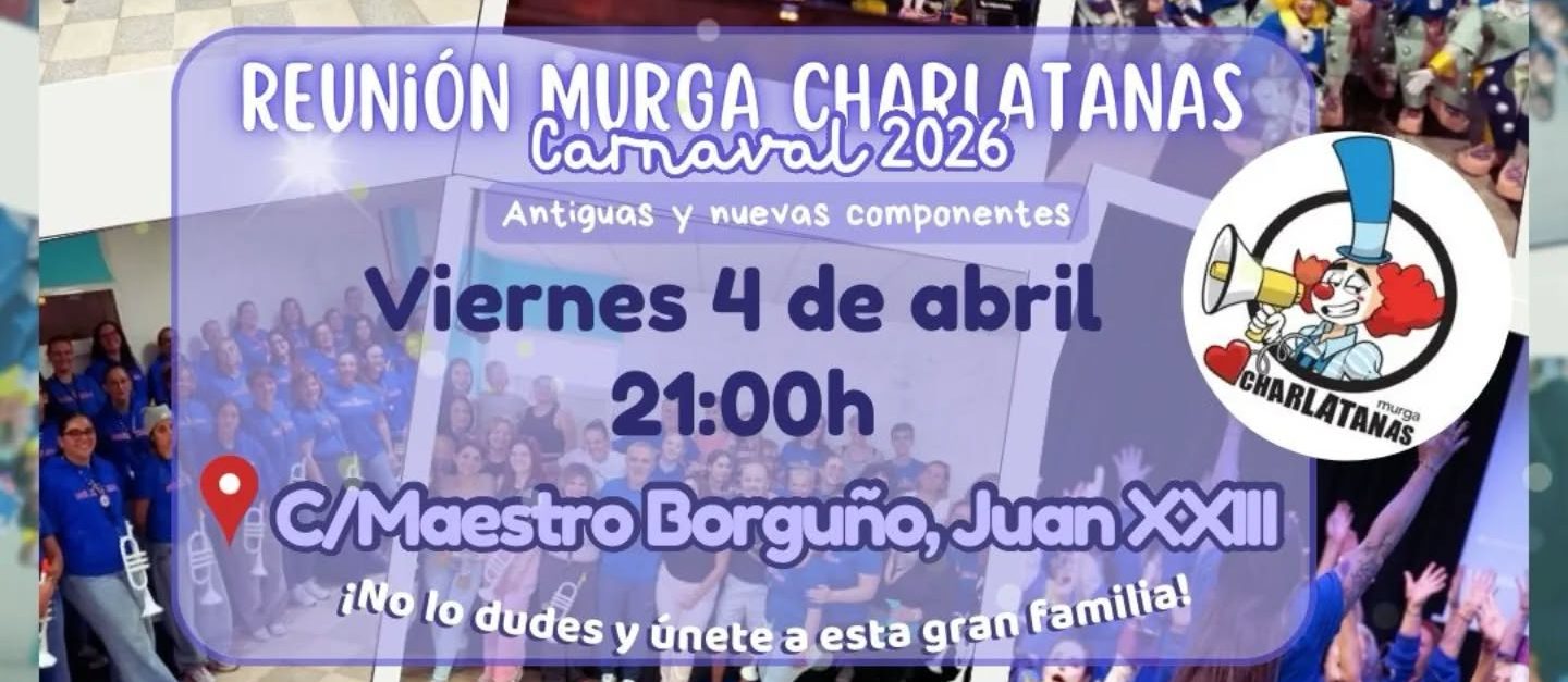 La murga Charlatanas ha dado el pistoletazo de salida a los preparativos del Carnaval 2026 con una convocatoria abierta a todos los interesados en formar parte de su proyecto. El próximo viernes 4 de abril a las 21:00 horas, el grupo recibirá a nuevos integrantes en su local de ensayo, ubicado en la calle Maestro Borguño, Juan XXIII.