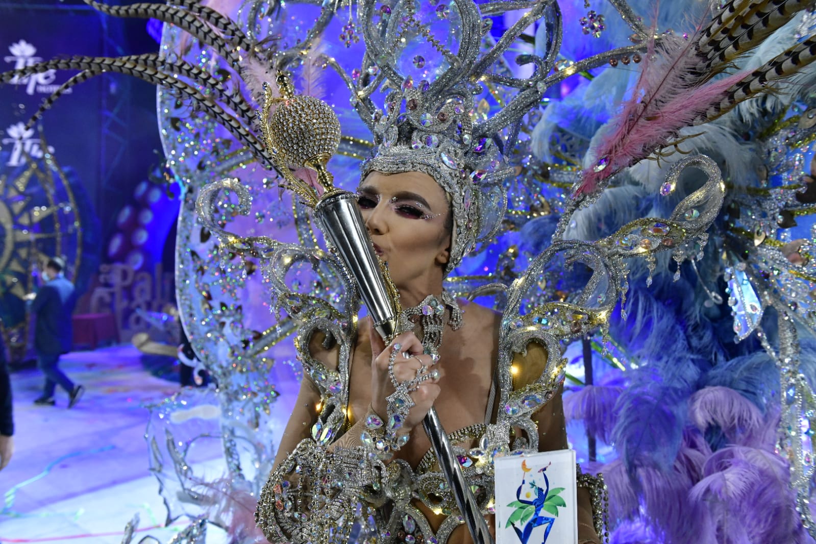 La magia del Carnaval inundó desde las 21:15 horas el parque Santa Catalina que, después del año de parón a causa de la pandemia, volvió a vivir los nervios de la coronación. Agua, viento, tierra y fuego; civilizaciones extintas y hasta generaciones que están por venir y que todavía crecen en el vientre de sus madres han llenado el escenario diseñado por el interiorista Sergio Macías. Un despliegue de color y vida para disfrutar del encuentro que estuvo conducido por los periodistas Raquel Sánchez Silva y Paco Luis Quintana, y el humorista Kike Pérez.