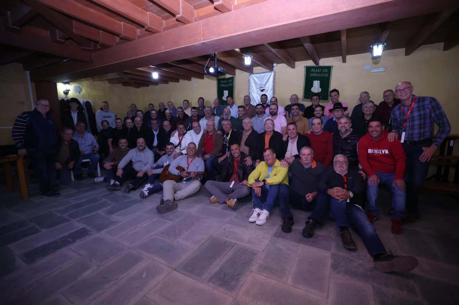 Los Sombreritos está conformado por un colectivo de 90 personas, aunque suben a cantar algunos menos, entre 74 y 75, pero siguen haciendo los 90 disfraces. En la actualidad ha entrado gente más joven, pero aún se mantienen siete de los integrantes originales, aquellos que en 1975 decidieron crearla para divertirse en las fiestas entre un grupo de amigos. De más de 65 años son casi una veintena.