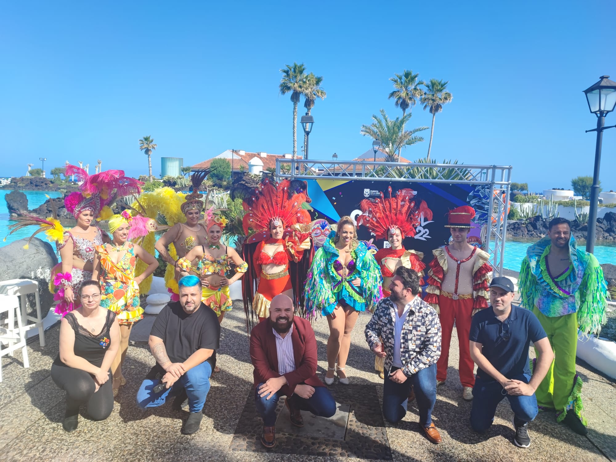El alcalde, Marco González, presentó ayer el programa de actos, acompañado del concejal de Fiestas, Alberto Castilla; las comparsas Moana, Carabao Guayana, Son Bahía y Grupo Wild Dance, y el autor del cartel de este año, el ilustrador portuense Jonás Emanuel, quien explicó el simbolismo de Wannabe, la fantasía elegida con la participación de la ciudadanía, basado en las míticas Spice Girls.