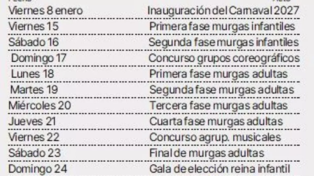 Pero el desafío no es únicamente logístico. Fuentes de la organización admiten que aún quedan flecos importantes por definir. El concurso de agrupaciones musicales, cuyo formato y fechas se han visto alterados este año, sigue sin tener un calendario cerrado para 2027. Tampoco está clara la posible reubicación de otros actos tradicionales, como el concurso de la canción de la risa, que podría cambiar de escenario en busca de una mejor adecuación a sus necesidades técnicas y de aforo.