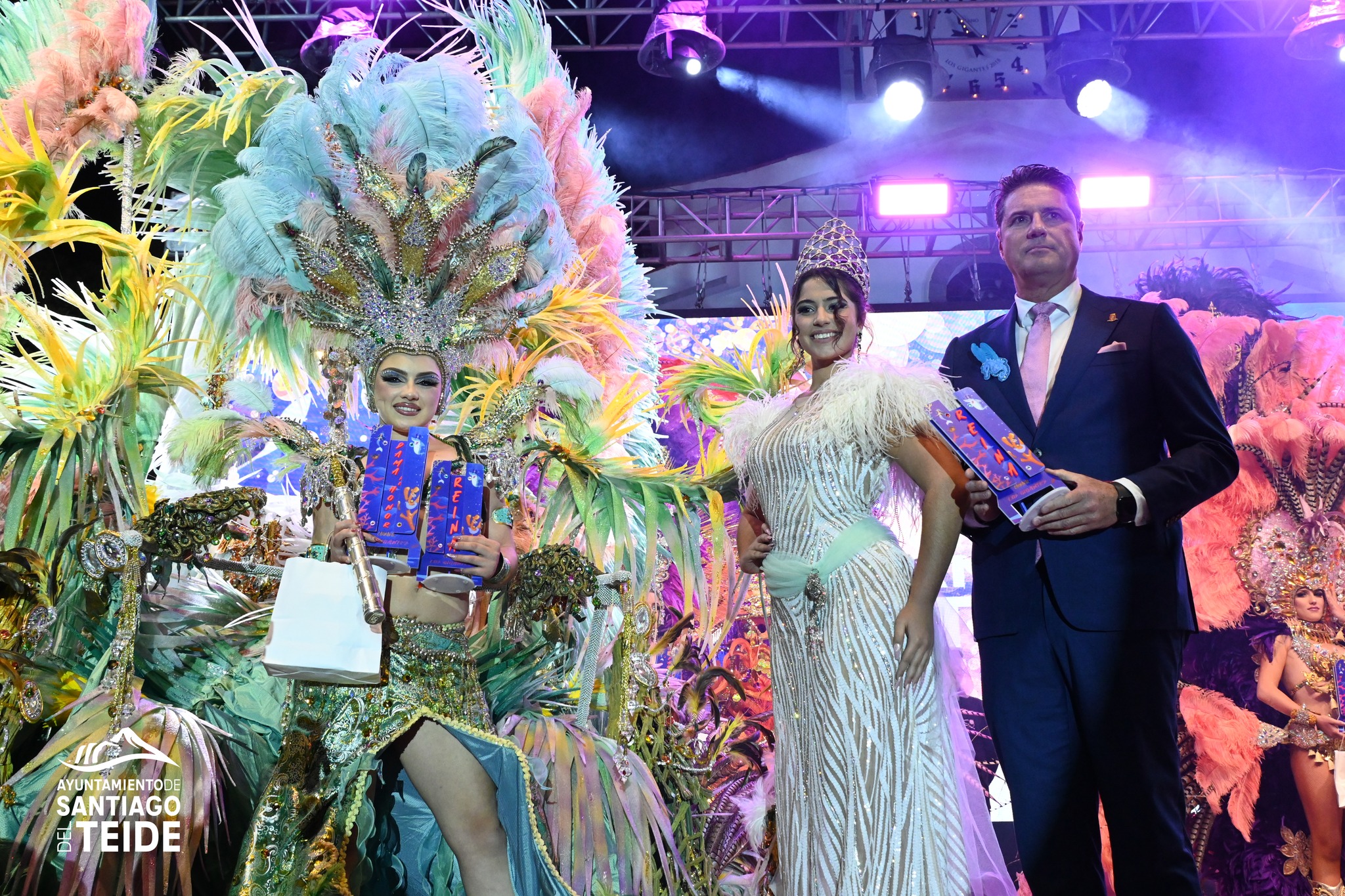 Desde el Ayuntamiento de Santiago del Teide quisieron felicitar públicamente a las nuevas reinas y hacer extensivo el agradecimiento al resto de participantes, así como a los profesionales que hicieron posible ambas veladas. Diseñadores, patrocinadores, técnicos y colaboradores recibieron el reconocimiento de la corporación municipal por su implicación en unas galas que contribuyen a engrandecer un carnaval que edición tras edición gana en proyección y seguimiento.
