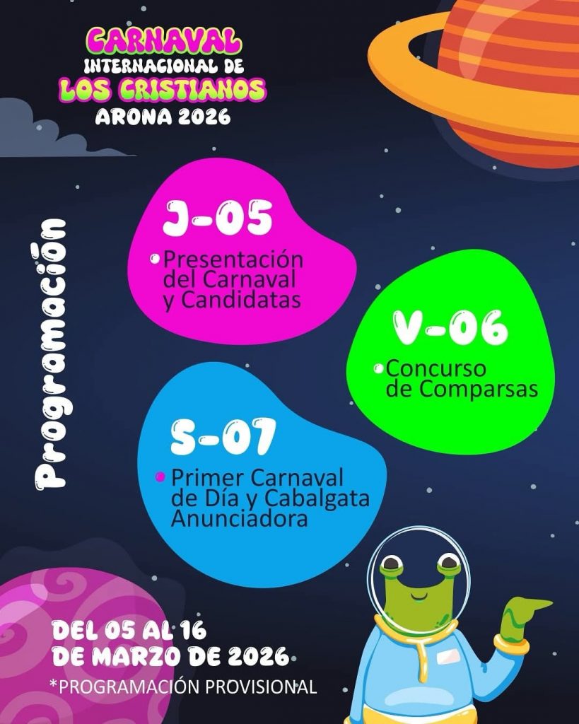 Bajo el lema “una edición galáctica”, el Carnaval Internacional de Los Cristianos prepara una fiesta “de otra dimensión” para marzo de 2026, con una programación que promete llevar la tradición carnava­lera a órbitas nunca antes exploradas.