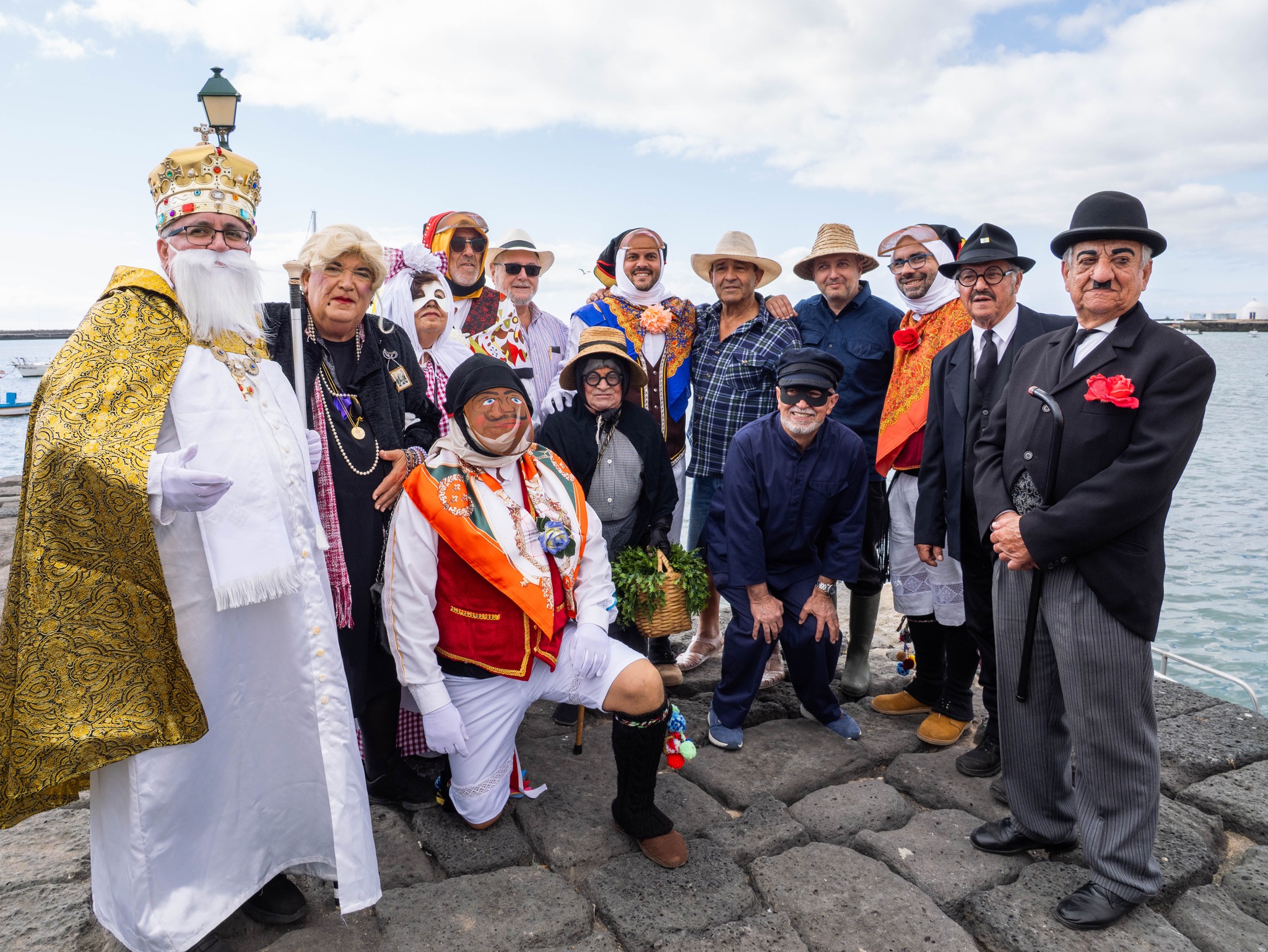 Tras desembarcar en el Muelle de la Pescadería de la capital lanzaroteña, los miembros de la Parranda Marinera, que incluía por primera vez entre sus componentes al alcalde y al teniente de alcalde de la ciudad, Yonathan de León y Echedey Eugenio respectivamente como invitados de excepción, protagonizaron un colorido, bullicioso y alegre pasacalles por la ciudad, en el que aprovecharon para propinar más de un buchaso a quienes tuvieran al lado, junto a papahuevos y otros personajes y mascaritas refajadas con sábanas y atuendos porteños.