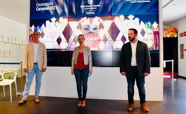 La alcaldesa de Santa Cruz de Tenerife, Patricia Hernández, y el concejal de Fiestas, Andrés Martín Casanova, han presentado este sábado el diseño del escenario del Carnaval del año 2021, creado una vez más por el artista Javier Torres Franquis (profesor de Bellas Artes en la Universidad de La Laguna) y que responde al tema ‘Los Carnavales del mundo’.
