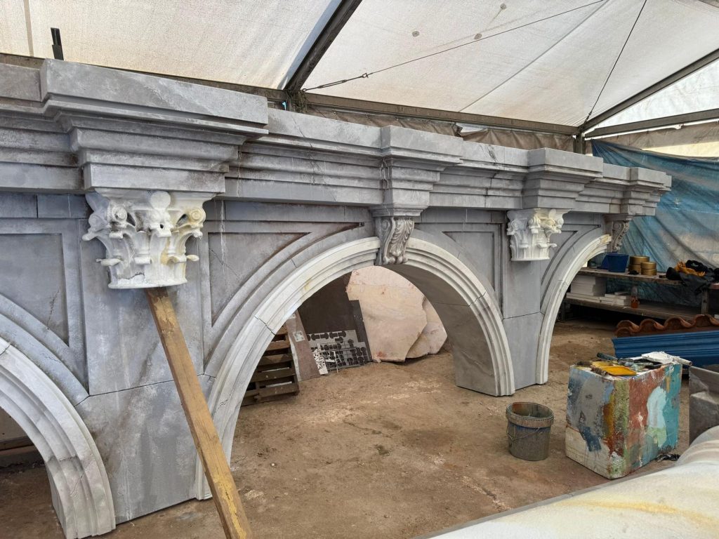El material protagonista es el corcho blanco, elegido por su ligereza y versatilidad. Las piezas, que ocuparán unos 1.500 metros cúbicos, se modelan primero con tecnología 3D y luego se lijan, texturizan y pintan a mano, un proceso artesanal que otorga un hiperrealismo y permite, además, su reutilización en actos al aire libre posteriores.