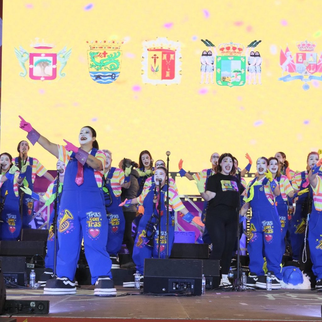 El broche de oro lo puso un hecho sin precedentes: la primera participación de una murga procedente de la capital. La formación femenina Tras con Tras, de Santa Cruz, hizo su debut en el concurso norteño con 48 componentes. Bajo el lema “Siempre TCT” y la fantasía “Llegamos sobre ruedas y el Carnaval nos lo gozamos”, dirigida por Taty Rodríguez y con Cristo Casas en la dirección musical y letras, cerraron la noche interpretando “Canarias sálvese quien pueda” y “El algoritmo”.