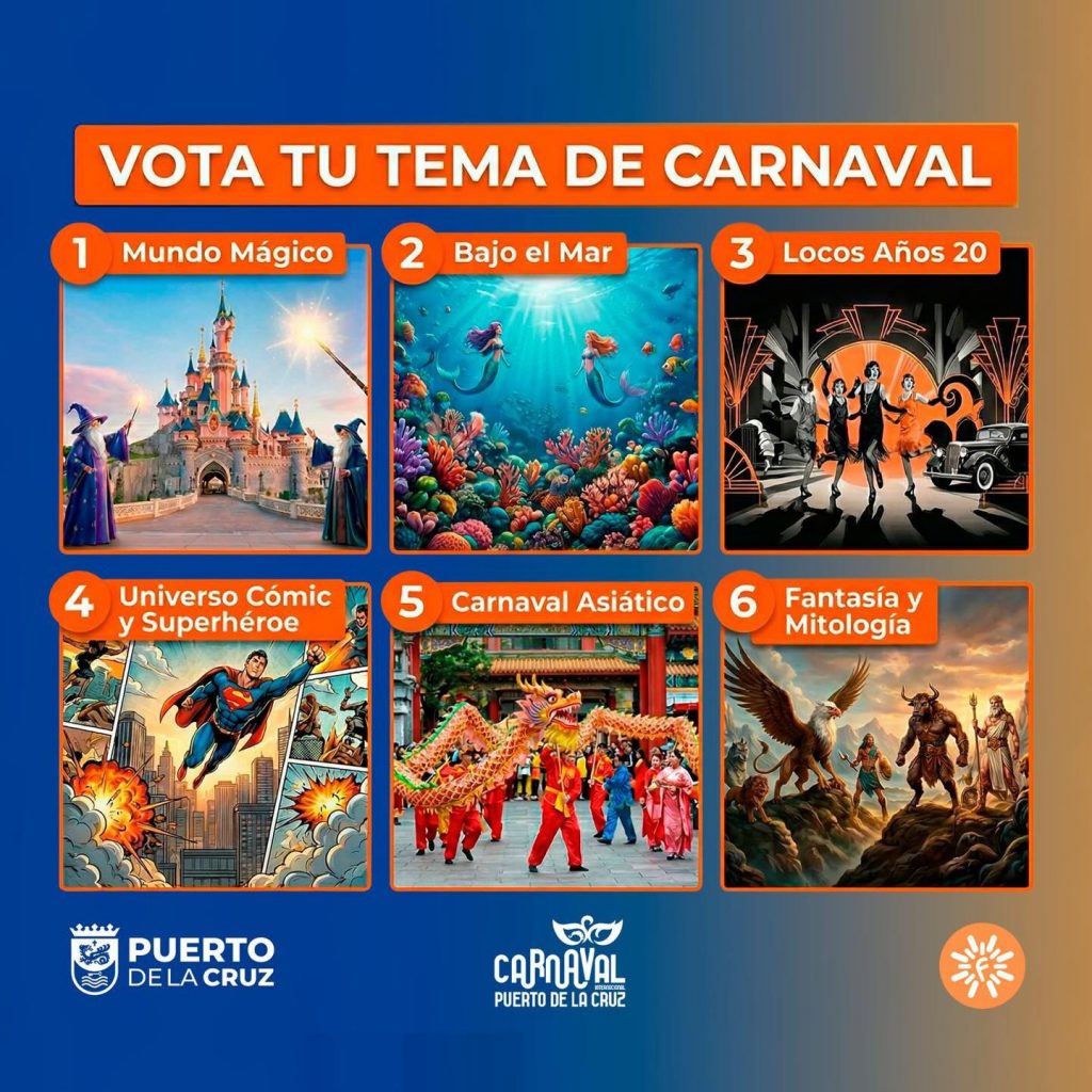 El Carnaval Internacional de Puerto de la Cruz 2027 quiere que sean los propios ciudadanos quienes decidan el rumbo de la próxima edición. El Ayuntamiento ha puesto en marcha una iniciativa participativa a través de la cual los interesados podrán elegir la temática que protagonizará el desfile del año que viene, en una votación que permanecerá abierta hasta el próximo 6 de marzo.