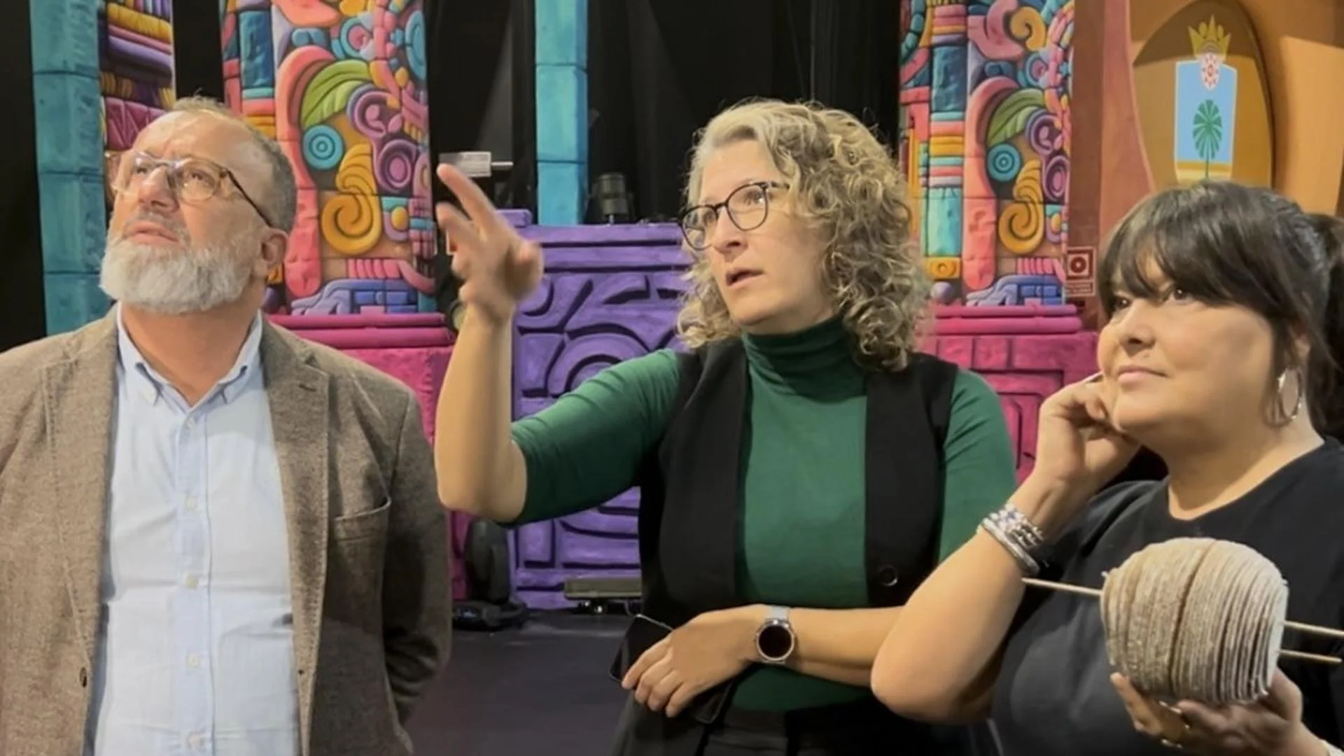 El alcalde de Santa Lucía de Tirajana, Francisco García, y la concejala de Cultura, Yaiza Pérez, visitaron este martes el teatro Víctor Jara para conocer cómo están finalizando los trabajos de la escenografía y para felicitar al equipo del Taller de Animación municipal que se ha encargado de la construcción del escenario.