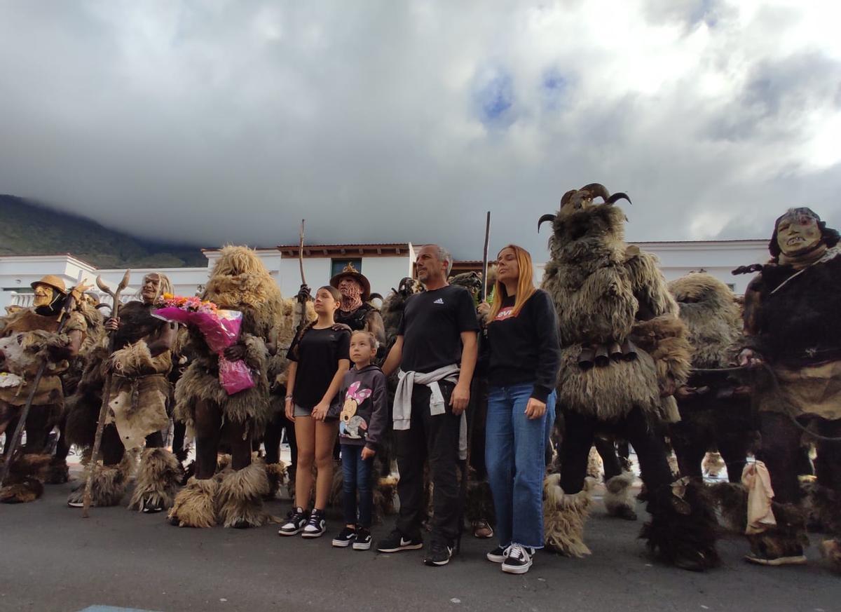 Todo comenzó a las 17:00h con la tradicional salida desde la Casa del Miedo. Pero en esta ocasión, en un gesto de respeto y recuerdo, el habitual recorrido inicial marchó en silencio hasta la plaza de Tigaday, donde se llevó a cabo un emotivo acto de reconocimiento, en presencia de su familia, a Ramón Padrón, quien falleció en febrero de 2024. Un tributo a su incansable labor por mantener viva la esencia de esta celebración, la cual fue rescatada originalmente por su padre en los años cuarenta.