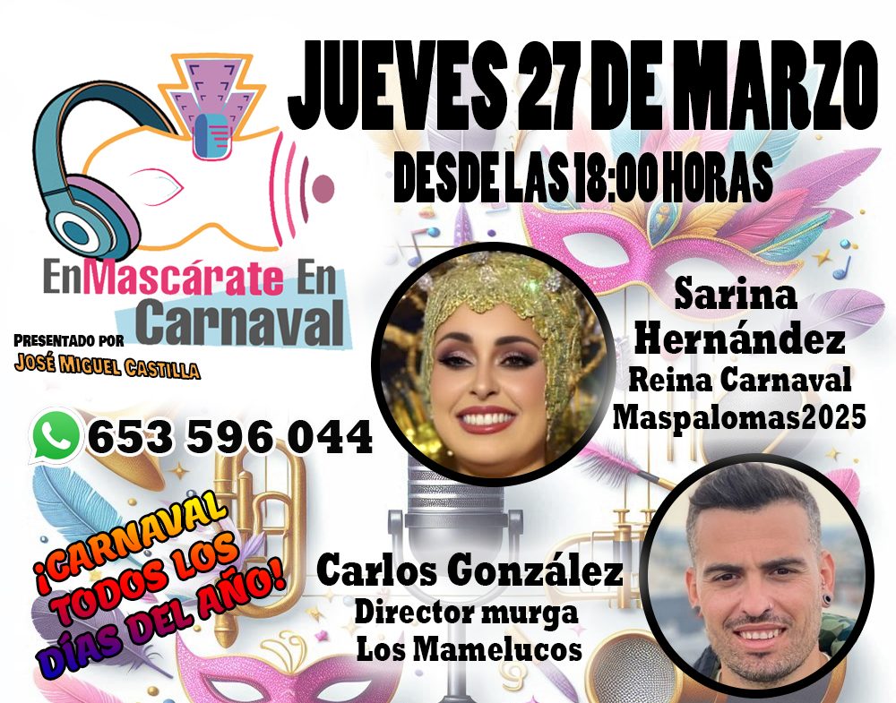 Queremos saber qué piensas. Si tienes preguntas para nuestros invitados o deseas dar tu opinión sobre el carnaval, ¡no dudes en participar! Hemos habilitado una línea de WhatsApp donde puedes enviarnos mensajes y preguntas al número 653596044.