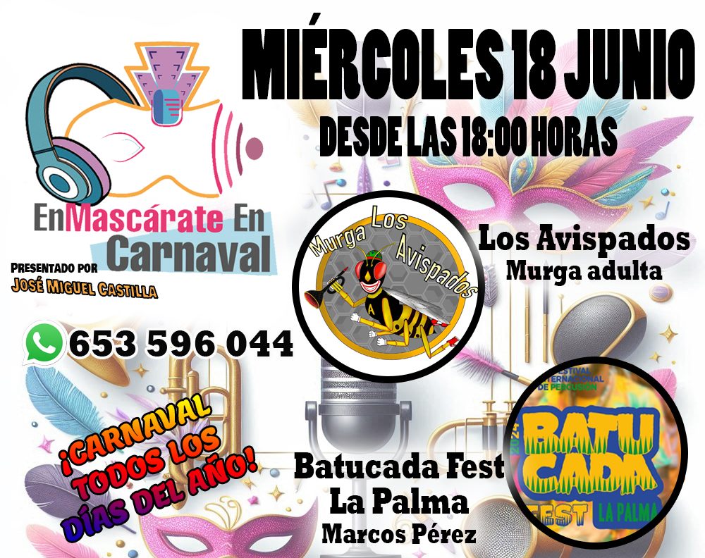 También por Radio Carnaval Canarias www.radiocarnaval.net, los sábados de 18:30 a 21:00 horas