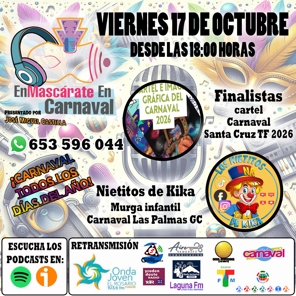 También por Radio Carnaval Canarias www.radiocarnaval.net, los sábados de 18:30 a 21:00 horas