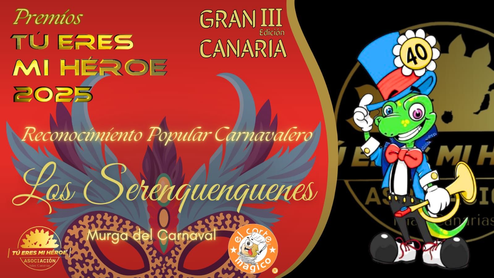 En esta ocasión, el Reconocimiento Popular Carnavalero recaerá en la histórica Murga Los Serenquenquenes, uno de los colectivos más emblemáticos del carnaval grancanario, cuyo legado artístico y humorístico ha marcado a varias generaciones de isleños.