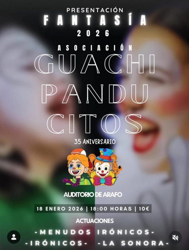 La Asociación Guachipanducitos presentará oficialmente su Fantasía 2026 el próximo 18 de enero, a las 18:00 horas, en el Auditorio de Arafo, en un acto muy especial que coincidirá con la celebración de su 35 aniversario, desvelar´na las fantasías de su murga infantil Guachipanduzy y la murga adulta Guachinquietas