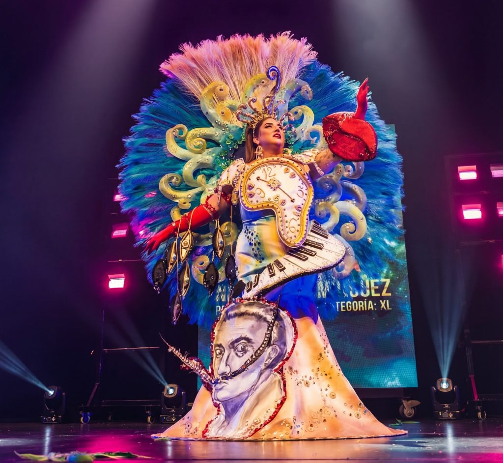 El universo onírico y surrealista de Salvador Dalí encontró su reflejo en el Carnaval a través de las manos de la diseñadora Juliana Serrano. Con una fantasía inspirada en el genio de Figueres, Serrano se alzó con el galardón a “Mejor traje de fantasía” en la pasada edición del certamen “Gay Diosa Universo”, un evento que consolida su misión de visibilizar el arte de la transformación a través de la elegancia, la diversidad y la creatividad.