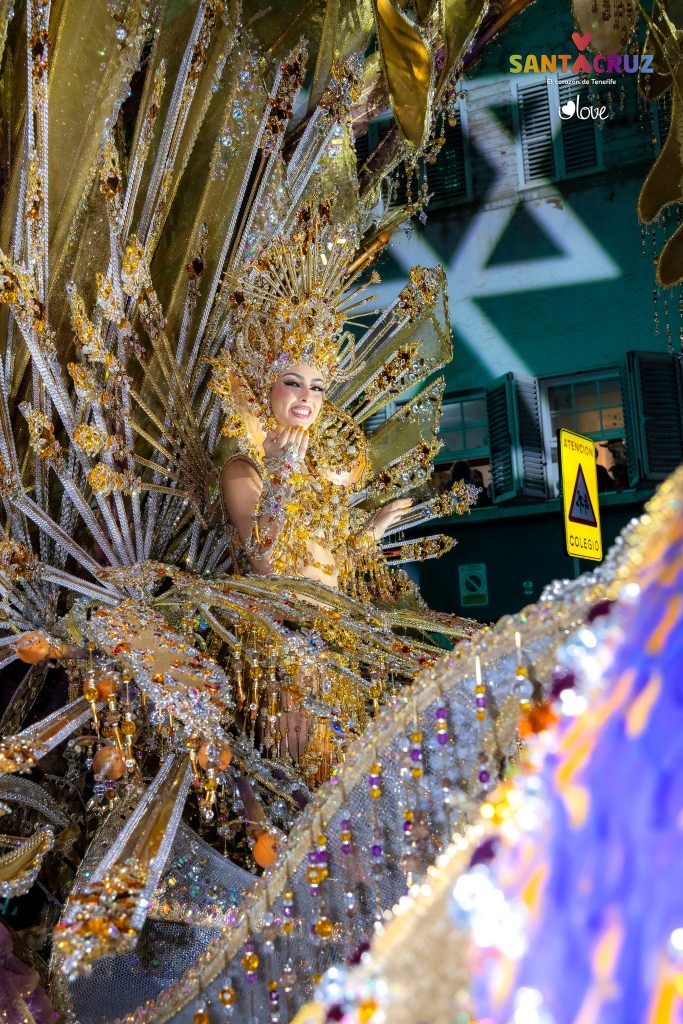 La Reina del Carnaval de Santa Cruz 2026, Carla Castro, seguida por su corte de honor, ocupó un lugar preferencial en la Cabalgata Anunciadora de las fiestas, igual que la soberana infantil, Micaela Díaz, y la de los Mayores, Dominga Jiménez, junto al resto de las concursantes en los tres certámenes de elección de reinas.