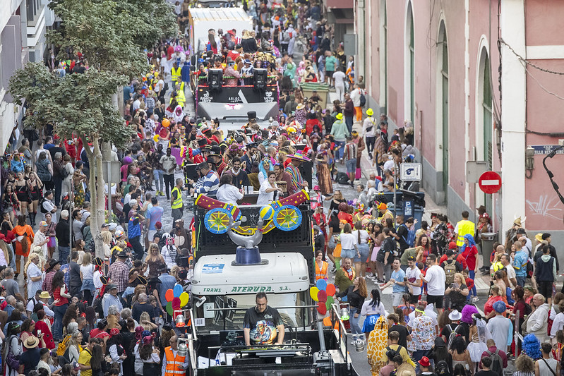 Encabezan la comitiva las recién coronadas Reinas del Carnaval y su corte, Drag Ármek, vencedor de la Gala Drag Queen y el resto de finalistas, junto a las murgas, comparsas y grupos del Carnaval, que salen al encuentro de las fieles mascaritas que abarrotan las principales vías en la última explosión carnavalera de «Los Juegos Olímpicos».