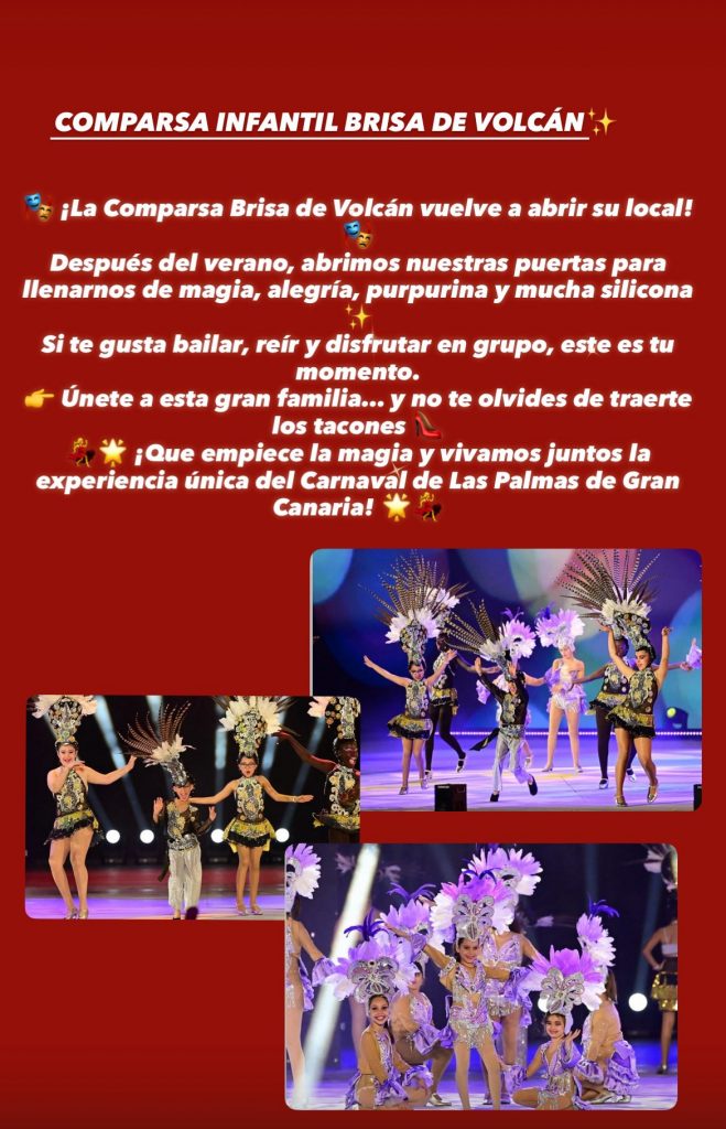 La comparsa infantil Brisa de Volcán anunció la reapertura de su local tras el parón veraniego, con el objetivo de preparar su regreso a los escenarios y participar en el Carnaval de Las Palmas de Gran Canaria.