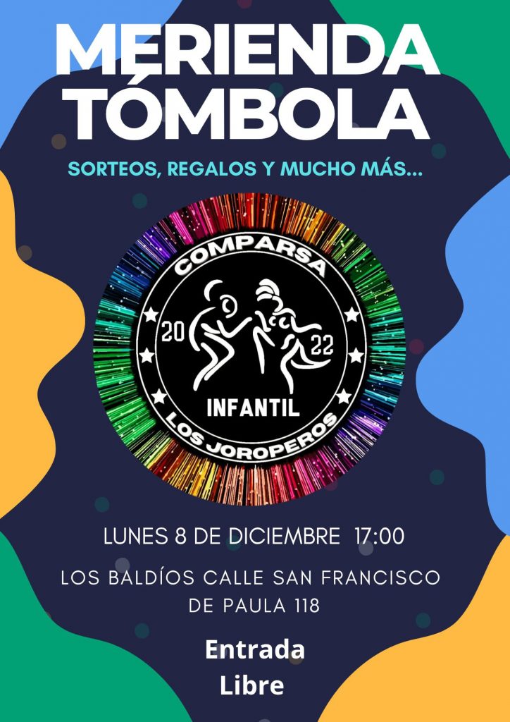 La comparsa infantil Los Joroperos ha organizado una merienda–tómbola abierta a todo el público, que tendrá lugar el lunes 8 de diciembre a las 17:00 horas en Los Baldíos, concretamente en la calle San Francisco de Paula, número 118. La actividad está pensada como un encuentro familiar y festivo, con el objetivo de recaudar fondos y reforzar la vida social del colectivo infantil que forma parte de la histórica comparsa.