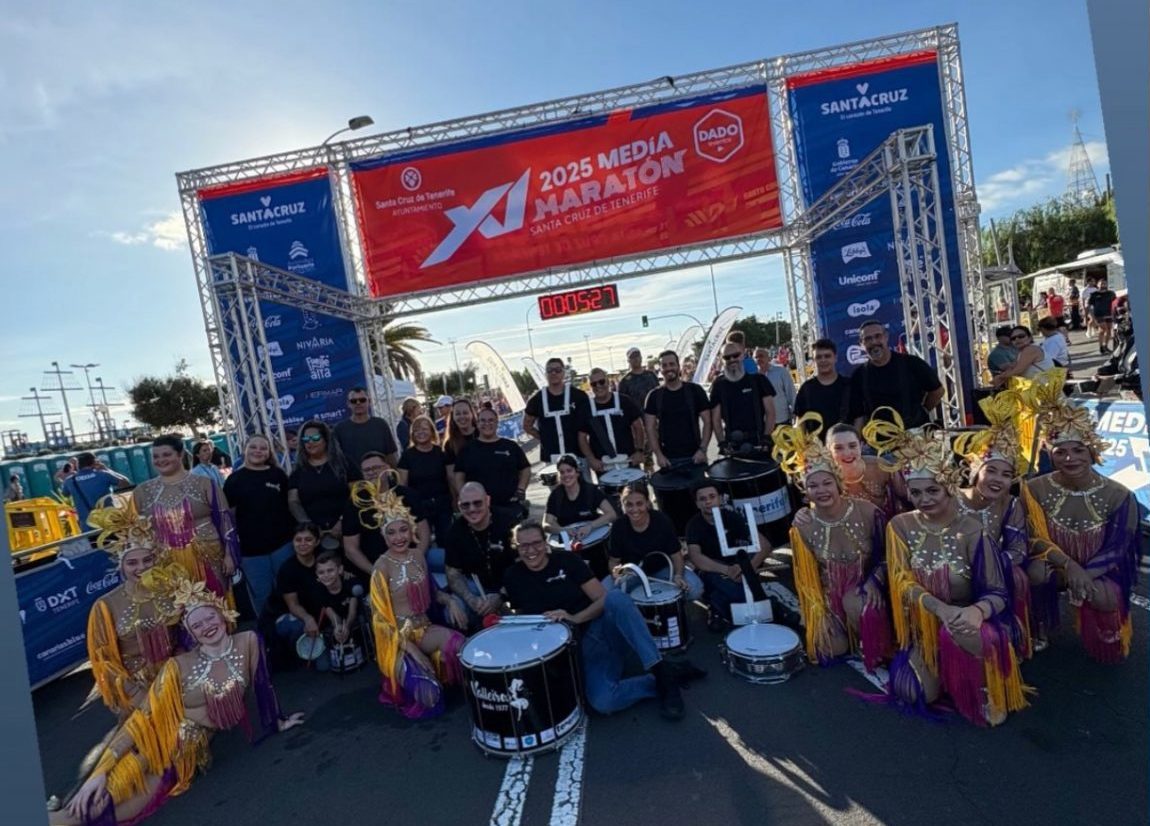 La edición de la Maratón de Tenerife celebrada este 16 de noviembre vivió uno de sus momentos más vibrantes gracias a la presencia de la comparsa Los Valleiros, que volvió a demostrar su capacidad para transformar cualquier espacio en una celebración llena de ritmo, color y pasión carnavalera.
