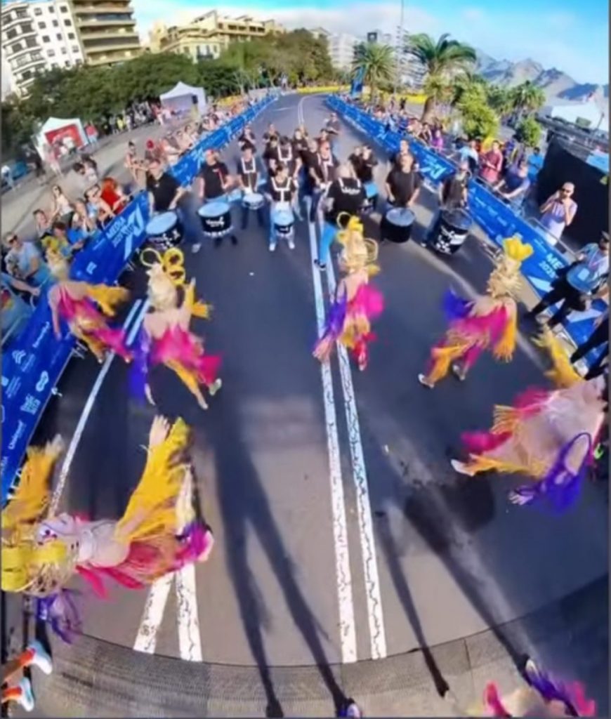 “Su alegría era contagiosa”, comentaban algunos participantes, que aseguraron haber sentido un empujón emocional al escuchar el sonido característico de la comparsa. Para muchos atletas, exhaustos entre el sudor y los kilómetros, la aparición del grupo supuso un momento de alivio y motivación. “Recordaron que esta isla late distinto cuando suena la música”, describió un espectador.