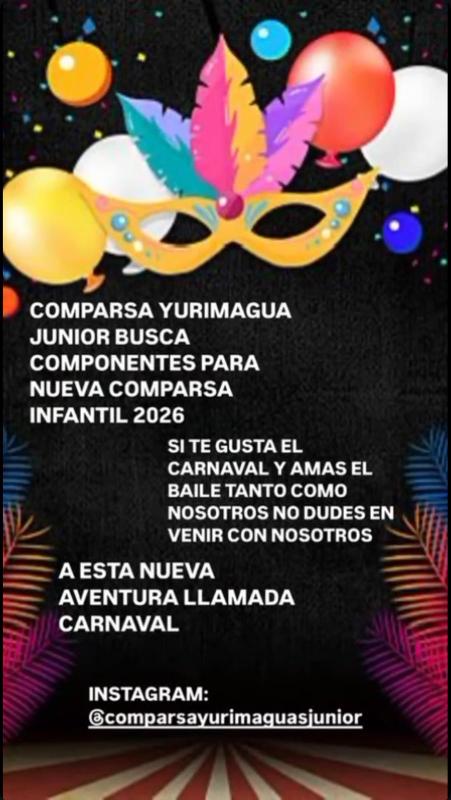 La alegría, el color y la pasión por el carnaval ya comienzan a sentirse en el aire. Y es que la Comparsa Yurimagua Junior ha lanzado una convocatoria abierta para formar parte de su nueva comparsa infantil de cara a los festejos del Carnaval 2026.