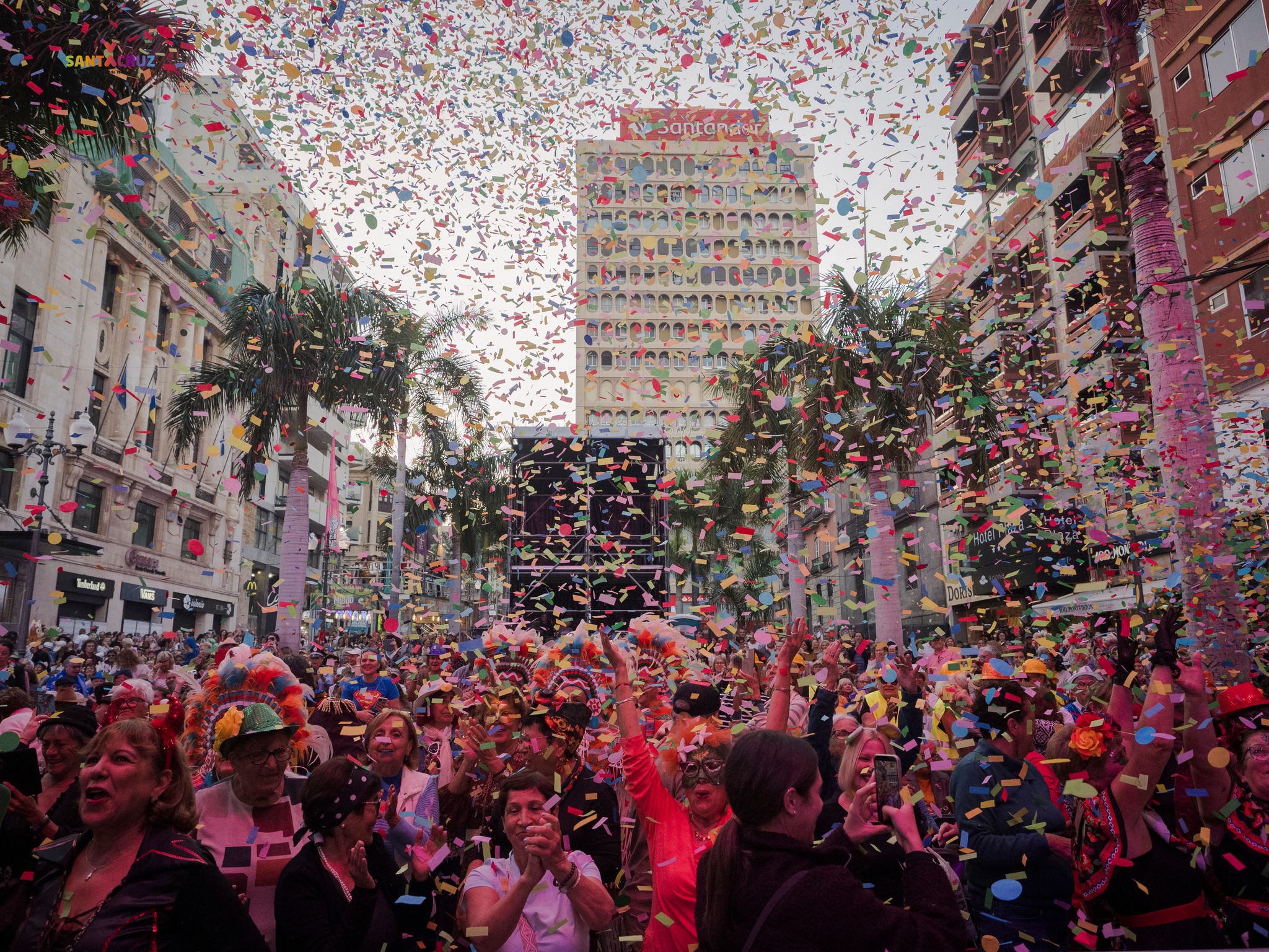 La plaza de La Candelaria de Santa Cruz acogió ayer, por tercer año consecutivo, el Carnaval Sénior de Canarias, un evento pionero dedicado a las personas mayores y que despidió esta tarde los eventos de esta edición de “Los Ritmos Latino” en la que estuvieron presentes, además de la concejala de Políticas Sociales del municipio, Charín Gónzález, y el concejal de Fiestas, Javier Caraballero; Candelaria Delgado, consejera de Bienestar Social, Igualdad, Juventud, Infancia y Familias del Gobierno de Canarias, y Verónica Meseguer, directora general de Mayores y Participación Activa.