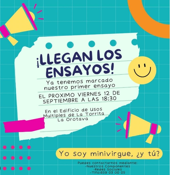 El esperado grito de guerra ha sonado: “¡LLEGAN LOS ENSAYOS!”. Con esta contundente y alegre declaración, la Murga Infantil Minivirgues de La Orotava anuncia el inicio oficial de los preparativos para la próxima temporada de Carnaval, marcando en el calendario su primera cita para el viernes 12 de septiembre a las 18:30 horas.