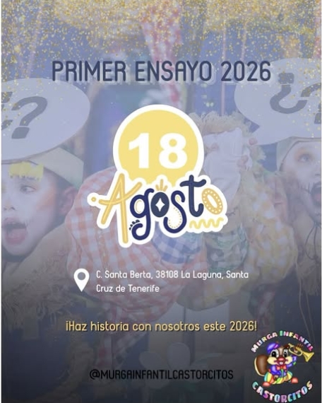 Tras un merecido descanso veraniego, los pequeños artistas de Castorcitos retoman sus actividades con energía renovada y muchas ganas de brillar en el escenario. El primer ensayo tendrá lugar el lunes 18 de agosto a las 18:30 horas en su local habitual, ubicado en la calle Santa Berta, en Los Majuelos (San Cristóbal de La Laguna).