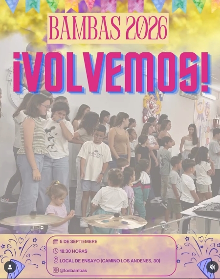 La murga infantil Los Bambas ha dado oficialmente el pistoletazo de salida a la preparación del próximo Carnaval 2026. Con un mensaje directo y lleno de energía —”¿Estás listo para la vuelta?”—, la agrupación convoca a todos los niños y niñas interesados en formar parte de su proyecto a partir de este viernes a las 18:30 horas en su local de ensayo.