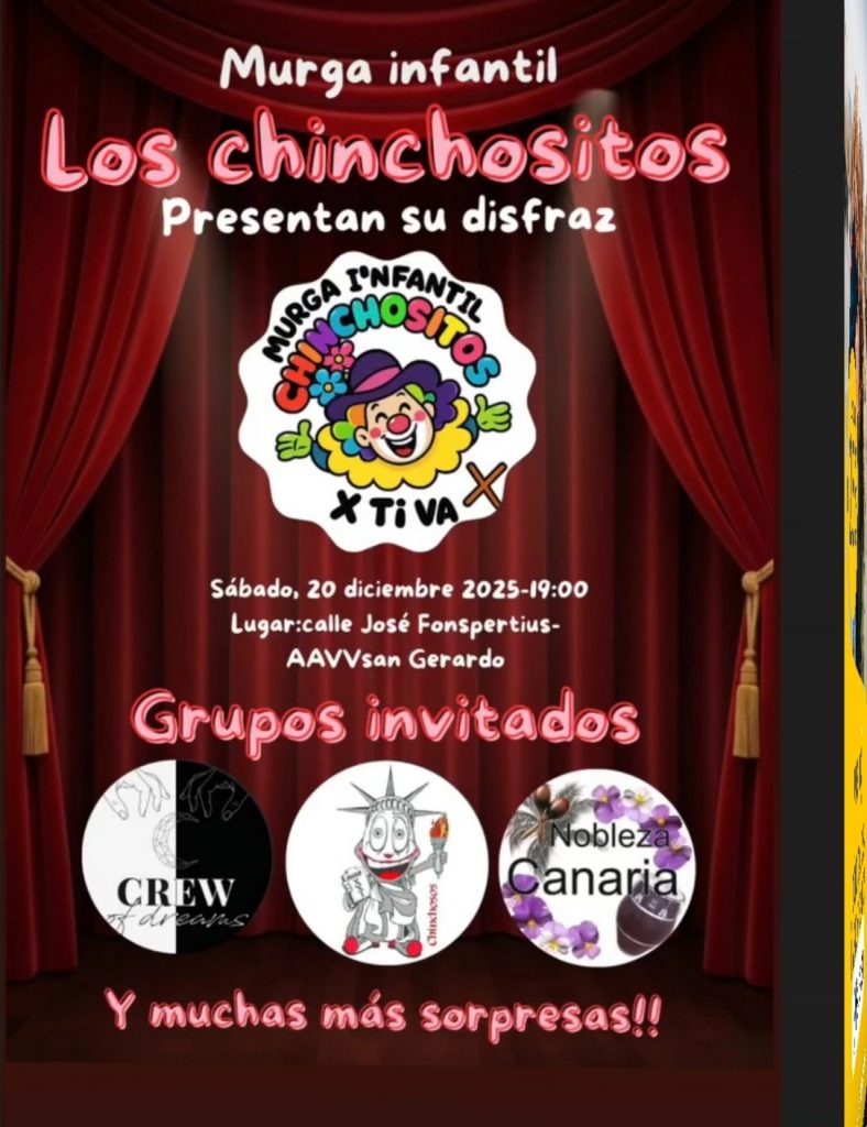 Bajo el lema “Murga infantil Los Chinchositos presentan su disfraz”, el acto promete una velada cargada de música, sonrisas y espíritu carnavalero, reafirmando el papel fundamental de las murgas infantiles en la transmisión de la cultura popular canaria a las nuevas generaciones.