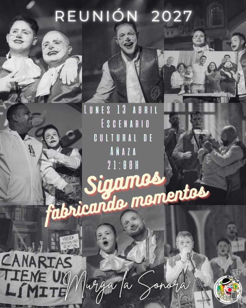 La Murga La Sonora ha anunciado oficialmente su primera reunión de cara al 2027, un encuentro que servirá para poner en común las bases del próximo proyecto y abrir sus puertas a todas aquellas personas que quieran sumarse a esta familia que no para de fabricar momentos inolvidables.