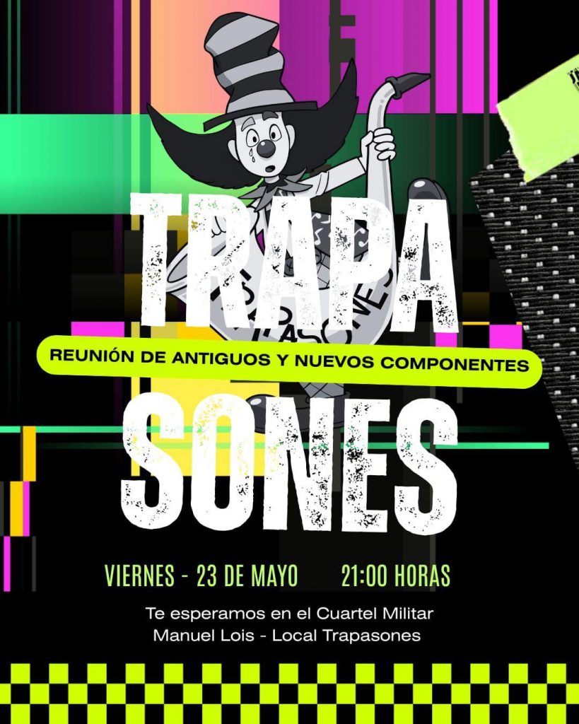Con un entusiasta “¡Volvemos contigo!”, la Murga Los Trapasones ha lanzado oficialmente su convocatoria para integrantes de cara al próximo Carnaval 2026. La agrupación, conocida por sus críticas sociales con humor y música, invita a aspirantes a su reunión informativa este viernes 23 de mayo a las 21:00 horas en su local del antiguo Cuartel Militar Manuel Lois (espacio C-1).
