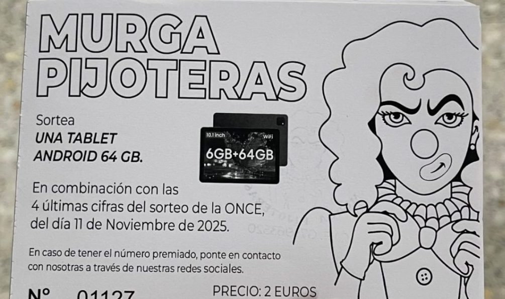La murga Pijoteras ha anunciado un atractivo sorteo para sus seguidores: una tablet Android de 64 GB, que será entregada a la persona que posea el número ganador en combinación con las cuatro últimas cifras del sorteo de la ONCE correspondiente al 11 de noviembre de 2025.