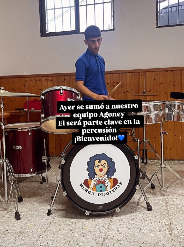 El joven músico, que ya se estrenó en los ensayos, formará parte clave dentro de la sección rítmica, pieza fundamental en el sonido y la puesta en escena de la murga. La noticia fue compartida en las redes sociales del colectivo, acompañada de una cálida bienvenida: “Ayer se sumó a nuestro equipo Agoney. Él será parte clave en la percusión. ¡Bienvenido!”.