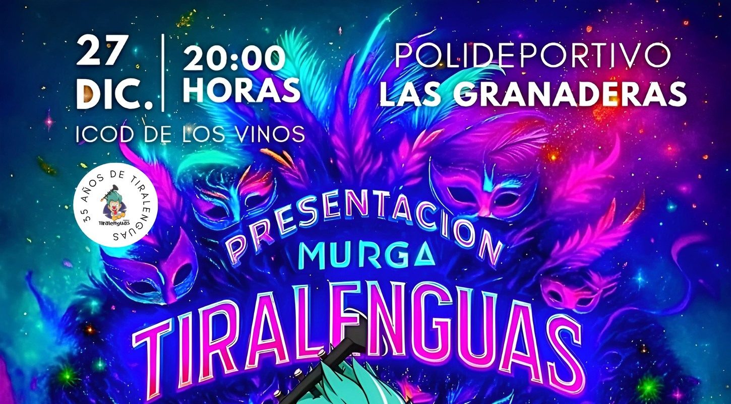 La murga Tiralenguas llega a un hito fundamental: su 35º aniversario. Para celebrar estas más de tres décadas de crítica, música y tradición, la agrupación icodense ha organizado una Gala Presentación de Fantasía que será mucho más que la simple desvelada de su disfraz para el Carnaval 2026. Será una noche de reencuentro, emoción y balance, abierta a todo el público. La cita es este sábado 27 de diciembre, a las 20:00 horas, en el Polideportivo de Las Granaderas de Icod de los Vinos.