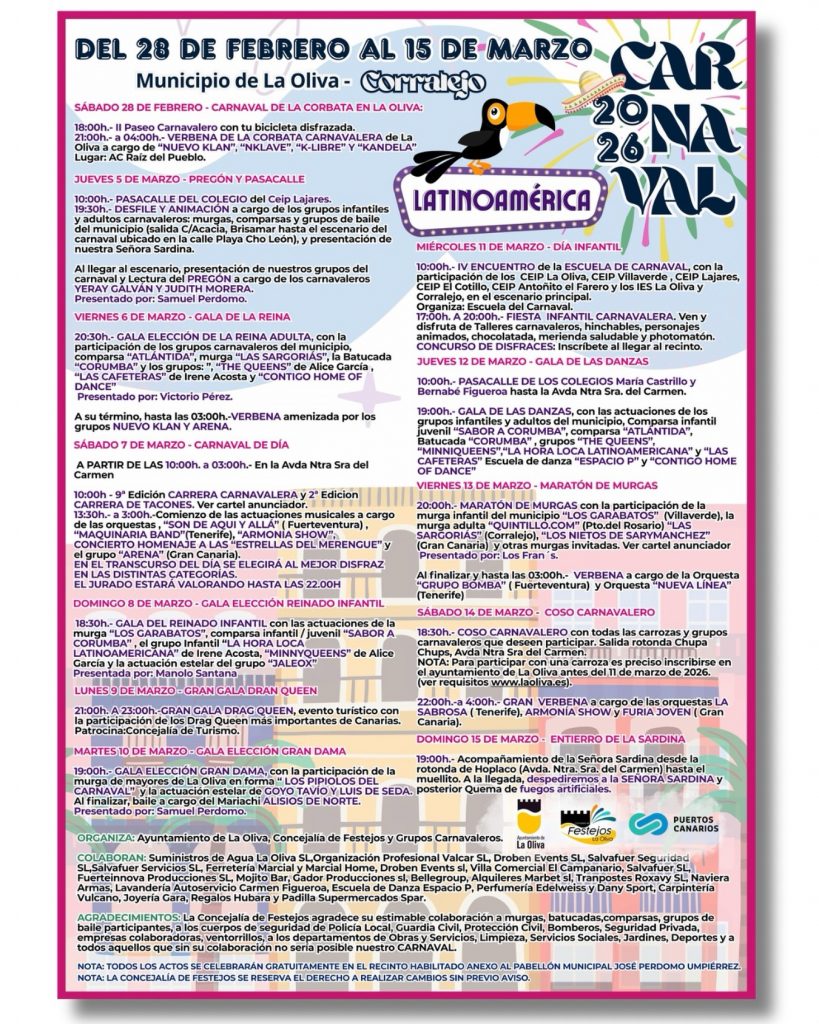 Ahora sí, solo queda un consejo: preparen sus disfraces. Porque en La Oliva, el Carnaval está a punto de comenzar.