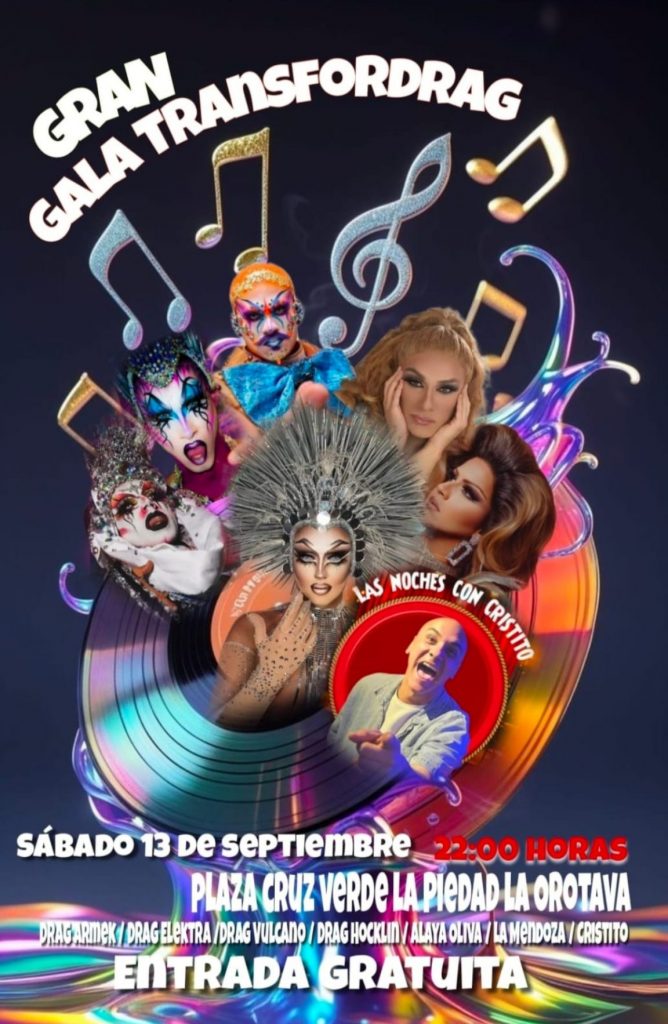 La Plaza Cruz Verde, en el barrio de La Piedad (La Orotava), se convertirá este sábado 13 de septiembre a las 22:00 horas en un escenario de fantasía, música y espectáculo con la celebración de la Gran Gala TransforDrag. El evento, de entrada gratuita, promete una noche llena de color, diversidad y talento.