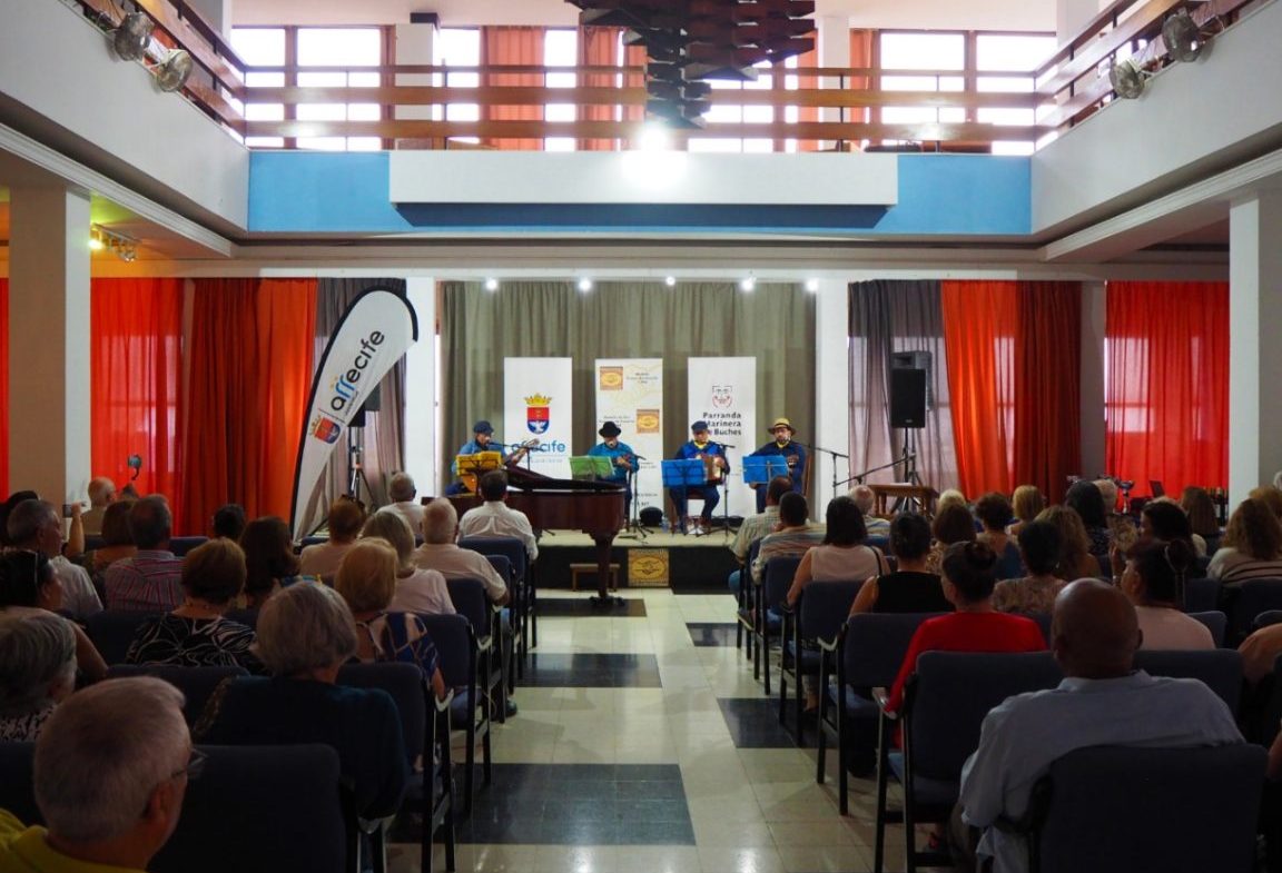 La Peña de Amigos, comisión interna de la parranda dedicada a formatos musicales reducidos, fue la encargada de llevar la tradición sonora de la isla a este espacio cargado de historia. Los socios Sergio Betancort, Antonio Cabrera, Miguel Medina y Ayose Quevedo, ataviados con la indumentaria tradicional de marinería que caracteriza a Los Buches, formaron un cuarteto que resonó con la autenticidad de las voces y instrumentos que han acompañado durante generaciones las faenas y celebraciones del mar.