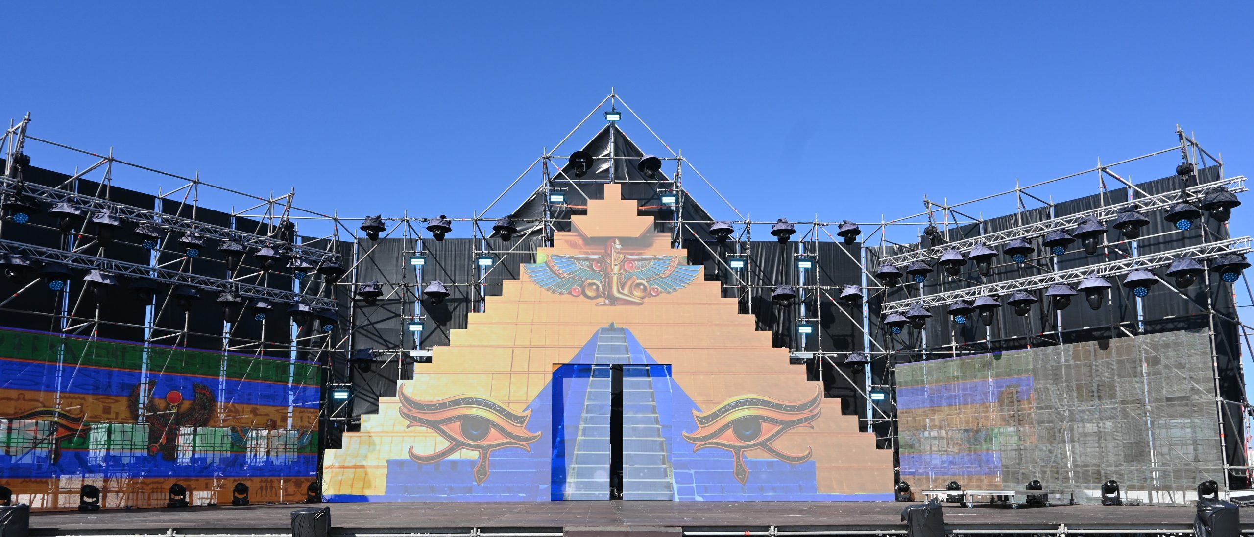 El estreno del escenario de “El Antiguo Egipto” tendrá lugar este viernes 21 de febrero con la Gala del Pregón y el concierto de La Orquesta Mondragón. El sábado 22 la gran pirámide volverá a brillar en la Gala Drag Queen y el concierto de Edwin Rivera.